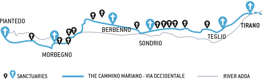 The Cammino Mariano delle Alpi pilgrimage route is a waymarked hiking trail that traverses Valtellina on a time-worn trail that culminates at the Sanctuary della Madonna di Tirano. While connecting numerous sites of Marian worship, you’ll blend the spiritual with the scenic as you discover Valtellina’s rich cultural history and curious corners of the landscape in the province of Sondrio.