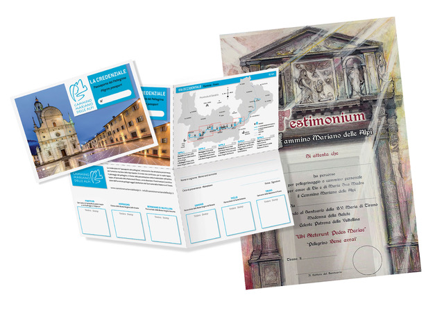 The credential, or pilgrim’s passport, is a record of your journey on the Cammino mariano delle Alpi and records your progress through the collection of six stamps. Once you have reached the Sanctuary of the Madonna di Tirano and presented the credential, complete with stamps, you’ll be given the Testimonium by the Rectorate to certify that you have completed the pilgrimage.
